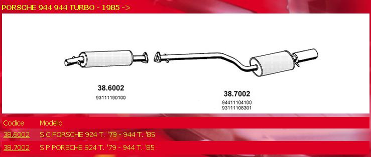Ciao. Oggi dal ricambista mi sono fatto dire il prezzo del terminale di scarico del 944 Turbo. A parte la cifra da palazzinaro di New York (440 Euro + Iva poi scontato a 380 totale), sul catalogo IMASAF c'era la dicitura 924 Turbo/944 Turbo con lo stesso codice ricambio. Chiedo di nuovo a voi: è possibile che lo scarico delle suddette sia intercambiabile? Qual'è il prezzo migliore che siete riusciti a spuntare per un terminale standard (NO INOX o sportivi)? Al prezzo che mi è stato riportato prenderei questo: http://www.cupspirit.com/detail.php?art_no=070001&maingroup=944&secondgroup=Echa ppement&thirdgroup=Silencieux%20arrière&date=04.85%20-%2007.91&affectation=944%2 02.5L%20Turbo Grazie Marco Porsche 951 51 India Red Tessera PMania n. 628 |
