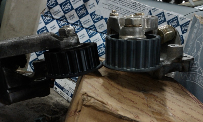 Questi invece sono i due modelli di tenditori meccanici delle 944, a sinistra l'originale delle 8V, a destra quello nuovo delle 16V, che NON va cambiato, ma va sostituito solamente il galoppino, 48€ in porsche.