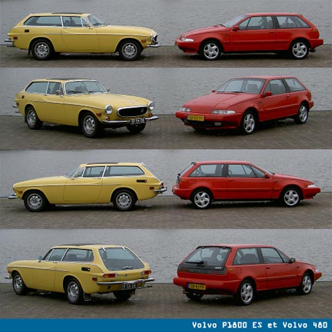 la progenitrice, P 1800 ES, è meravigliosa secondo me..con il suo mix tra classicismo delle linee e modernità della coda ha una personalità unica per stile ed eleganza mentre la linea della 480 è ancora di una modernità sconcertante..era un'alternativa "stilish" alle GTI allora più in voga, cioè Golf, 205 1.9..con in più confort ed ergonomia ottimi, e anch'essa personalità e stile molto particolari, anzi unici. Bella, sportiva, pratica, funzionale. In italia ne sono state vendute abbastanza (penso fosse uno dei mercati maggiori) mentre ora è rara. Penso che sia il momento giusto per trovarne una in buone condizioni. La nuova C30 cerca di ispirarsi alla tradizione delle Volvo ES..è piacevole a vedersi ma anche molto cara rispetto ai contenuti, e comunque IMHO non originale e interessante come le "antenate".. quest'accoppiata d'epoca dai colori "evocativi" la dedico a Guerzo che a quanto pare è un fine intenditore anche di un'altra materia..