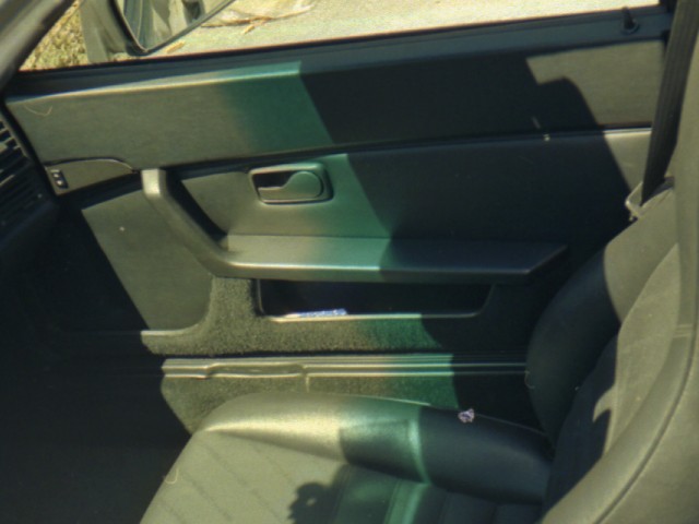 Appena un forellino da 3 mm sulla lamiera interna della porta è necessario per avvitare il supporto ad L che sostiene la tasca, molto più alta di quella, praticamente inutile, del pannello originale. Questa è l'unica modidica necessaria. Personalmente a me il pannello 944 con o senza sound system, fa accapponare la pelle, lo trovo disgustoso, con il tessuto addosso poi... Il pannello 968 ha la fascia sotto la linea di cintura sagomata, ben imbottita, realizzata con lo stesso schiumato del cruscotto, nonchè una bella predisposizione embossed per un Tweeter "vero". Lo skay (o pelle) impunturato diagonalmente intercetta e continua magistralmente il disegno delle fasce dell'imbottitura. La tasca sotto il bracciolo, impallata dai diffusori, viene riproposta più avanti. Insomma davvero bello e pratico. Unico neo le griglie che, come puoi vedere sotto, avendo una foratura "lasca", risultano troppo trasparenti. Io ho risolto cucendo sulla faccia interna della griglia, della tela acustica Audison.
