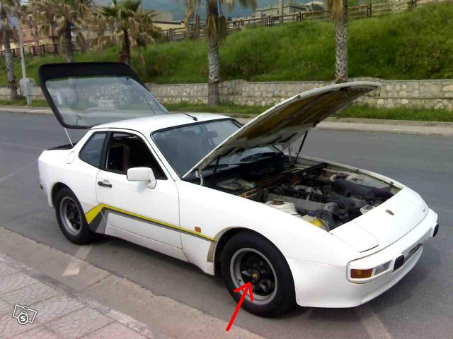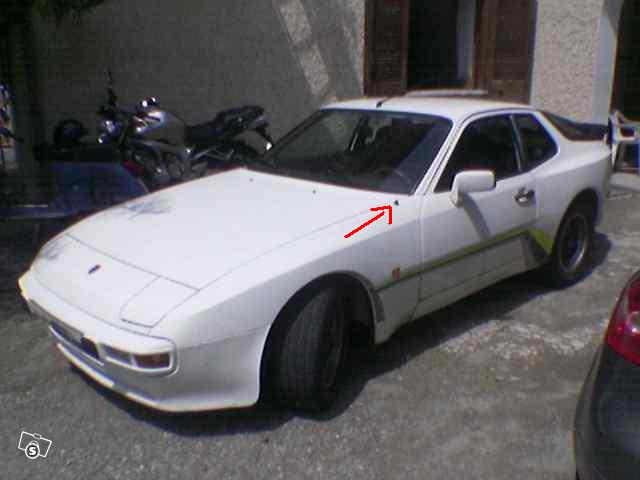 Noto anche che è stato smontato il tergilunotto, l'antenna sul tetto non è originale, se non erro le 944 prima serie erano già dotate di serie di un'antenna integrata nel parabrezza, ma questo è un dettaglio di poca rilevanza. Sul passaruota sinistro sembra sia presente un'altra antenna, probabilmente installata in precedenza. In queste altre foto si notano con più chiarezza questi particolari: