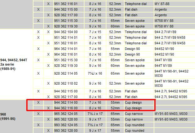 Jim ho conservato questa tabella dove i cup 16, che sono originariamente previsti sulla 968 come tra l'altro i 17 come quelli che ho io, prevedono canale 7 ant. et 55 e 8 post. et 52 ciao
