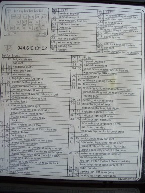 Ragazzi c'e' qualcuno di voi che ha lo schema dei fusibili di una 944 prima serie...per sapere a cosa appartiene ogni fusibile |