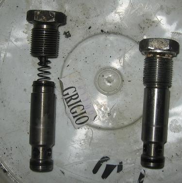 di nuovo salve a tutti! speravo di aver risolto i miei problemi ma mi sbagliavo! se prima la pressione era troppo alta e faceva esplodere il filtro dell'olio, ora è troppo bassa (a minimo è a 0 e naturalmente si accende la spia dell'olio, mentre se dò gas arriva a 3 bar) il problema, prima, con la pressione troppo alta, era la valvola di regolazione della pressione che era bloccata; l'ho sistemata, ma ora il problema è l'inverso!!!! anche se però la cosa è strana perchè per 2 km non ha dato il minimo problema! la mia paura ora è quella che la valvola si sia bloccata, questa volta restando aperta; anche se però la cosa è strana perchè la molla di richiamo spinge in modo davvero efficace! ancora non ho potuto aver modo di smontare la valvola ma intanto volevo sapere se qualcuno di voi ha qulche idea! il livello olio controllato più e più volte è ok, il sensore è collegato correttamente e per il resto non mi viene in mente altro! fatemi un pò sapere cosa ne pensate! questa è la foto della valvola in questione (affiancata ad un altra)