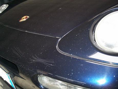Salve a tutti.... sono molto indeciso sul da farsi; dopo aver sistemato la parte meccanica, ora sto pensando alla carrozzeria.... si dice fatto 30 facciam 31... l'auto è in ottimo stato, putroppo l'unico problema è il frontale... ..la vernice del muso, se vista con luce diretta presenta una miriade di puntinature e sgraffietti causati dai soliti sassolini a velocità, oltre a delle rigature che sono state causate da qualche che in fase di parcheggio ha colpito il paraurti creando una sorta di smagliature sulla vernice.... ..la lucidatura non serve a niente... anzi evidenzia ancor di più i segni... Secondo il vostro gentile parere e pensando cosa fareste voi.... è il caso da veri "porschemaniaci" di fatto, procedere a riverniciatura del frontale, cioè paraurti cofano e penso anche parafanghi... o alla fine meglio come si suol dire fregarsene di tale cosa e godersi tranquillamente l'auto così?? qui ho la prima foto a luce normale dove non si nota nulla, e sotto delle foto fatte apposta per rimarcare i difetti.... (il segno orizzontale sopra il fendi è un riflesso)