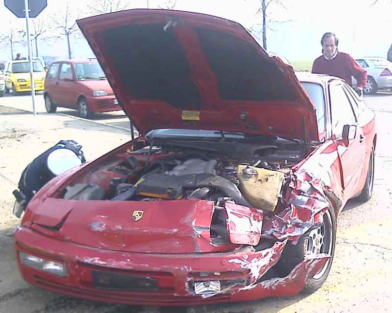 Ecco purtroppo un'altra differenza fra aver posseduto una amata Porsche 944T my85, ed una qualsiasi utilitaria: Se incontri per caso sotto casa la persona alla quale, a malincuore, hai venduto la tua bimba perche hai deciso di comprare un appartamentino con tua moglie, e quella persona ti racconta di aver fatto un incidente e ti passa via bluetooth le foto che ha scattato; provi una sensazione inspiegabile.