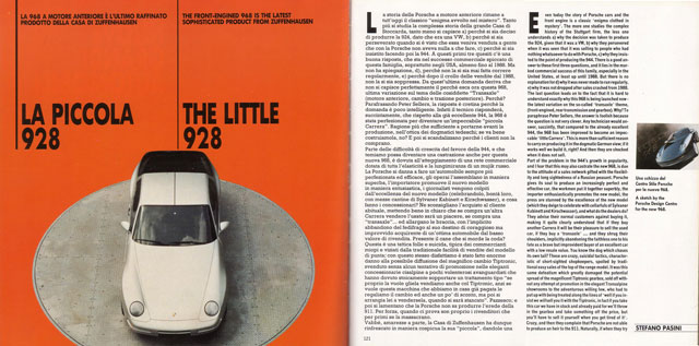 Cari amici, l'ottimo Umberto mi segnala questo thread, che riprende un mio vecchio articolo dell'epoca per la defunta 'LGA', e mi sono riletto volentieri. Capisco che non tutti siano d'accordo con quello che scrivo e sento, ma se si evita di descrivere le emozioni personali ci si appiattisce sul 'tutto bello' di tutte le riviste d'oggi e per me così finirebbe il gioco. Sulle vibrazioni del '4' io riportai all'epoca non solo le mie impressioni ma anche quelle dei tecnici Porsche con cui ero a cena la sera della presentazione internazionale nell'estate del 1991: assieme a Athos Evangelisti, mi trovavo accanto a Ulrich Bez, direttore tecnico Porsche e 'padre' della 993 (oggi all'Aston), e Bez per primo ammetteva che le vibrazioni gli avevano dato dei problemi ma, off the records, ci confidò che la precaria situazione finanziaria dellepoca non permetteva di esaminare altre possibilità. Così come per la stessa ragione non si poteva ancora fare un Tiptronic a 5 marce. Il vero problema della 968 era l'altissimo prezzo di listino per un'auto che, lo sapevano tutti, sarebbe durata ancora ben poco. Infatti ne cessò la produzione nel 1995 dopo 'soli' 12.776 esemplari. La definizione 'piccola Carrera' non è mia, proviene dalla cartella stampa dell'epoca (e io, infatti, rettifico il tiro più sotto). Voglio anche tranquillizzare l'amico Andrea sul fatto che non ho mai messo una retro al posto della prima, ma che negli USA questo ha dato molti problemi alla Porsche. Quanto alle mie opinioni e al fatto che posso tenermele, beh, io fra le altre cose ho scritto 12 libri sulla Porsche (http://www.stefanopasini.it/my_Books.htm) e ho diretto una rivista come Zuffenhausen tutta dedicata alle Porsche, quindi credo di avere diritto a esprimere qualche modesta opinione personale sull'argomento..... (Ho usato una 968 nuova per due mesi, all'epoca). E che personalmente, dopo avere provato su strada tutte le Porsche dal 1984 a oggi e averne acquistate alcune, ora possiedo e guido quotidianamente una 996 Turbo portata a 470 cavalli. Un cordiale saluto a tutti, in particolare a Alex (grazie per esserti preso la briga di scannerizzare questi due articoli....), Umberto e Lorenzo, Stefano (Messaggio modificato da StefanoP il 18 settembre 2008) |
