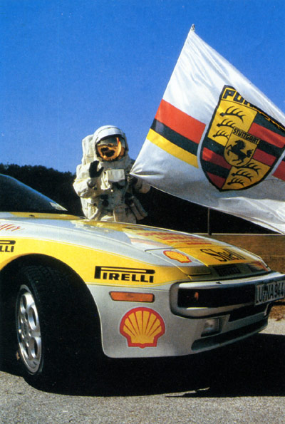 In questi giorni il forum 924 - 944 - 928 è particolarmente "brillante" con vari 3d corredati da belle e rare foto: 924 in pista - 924 rally - vecchia pubblicità - ecc -e la cosa è stimolante, vuoi per la componente di "amarcord", vuoi per il fascino delle foto pubblicate e forse poco conosciute, perchè contribuiscono a spezzare la routine del forum, sempre imho, naturalmente o forse perchè semplicementi li ho graditi. Quanti km. di percorrenza può fare una Porsche, in questo caso una 944 S ? Questo è l'evento che la Porsche aveva studiato nel 1988 per pubblicizzare la qualità e affidabilità del prodotto, insieme alla Pirelli ( pneumatici ) e alla Shell ( carburante e lubrificante TMO) Ad una 944 S strettamente di serie, corredata di tachigrafi di misurazione e registrazione, fu affidato la mission di percorrere km. 384.405 pari alla distanza dalla Terra alla Luna, con i normali tagliandi di controllo ogni km. 20.000, condotta non da collaudatori, bensì da 71 persone, uomini e donne, scelti tra i normali utenti, unica eccezzione i km. percorsi " a palla" sulla pista di Daytona, in cui fu affidata ad un pilota. la locandina