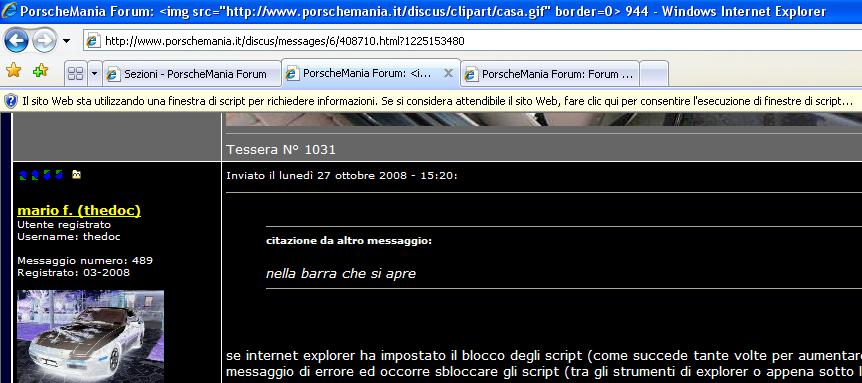se internet explorer ha impostato il blocco degli script (come succede tante volte per aumentare la protezione) non si apre la barra, si sente un messaggio di errore ed occorre sbloccare gli script (tra gli strumenti di explorer o appena sotto la barra degli indirizzi). (Messaggio modificato da thedoc il 27 ottobre 2008) (Messaggio modificato da thedoc il 27 ottobre 2008) tessera PiMania 1311