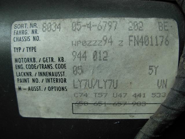 Dalle foto che hai postato sembra che i tuoi interni siano di colore nero, le plastiche inferiori della plancia, del tunnel centrale ed i pannelli delle porte sono infatti scuri, la moquette di rivestimento invece è chiara (comprese le tasche laterali), non ricordavo che le 944 con gli interni di nuovo disegno (come i tuoi, introdotti proprio nel 1985) prevedessero questo tipo di abbinamento. Tessera N° 1031