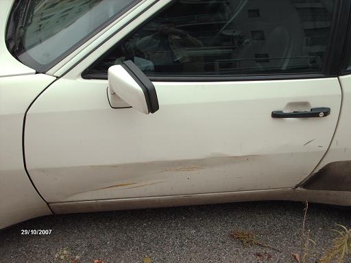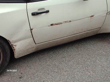 Seguirò i consigli che mi darà lui che in materia ne sa una più del diavolo, ho seguito per quanto ho potuto, il suo operato, ha lavorato sulla lamiera con maestria di chi conosce a fondo il suo lavoro e con sicurezza e mano esperta come se quelle lamiere fossero nate dalle sue mani, forse non ho postato le foto di come erano le fiancate dell'auto prima del suo intervento, allora eccole:
