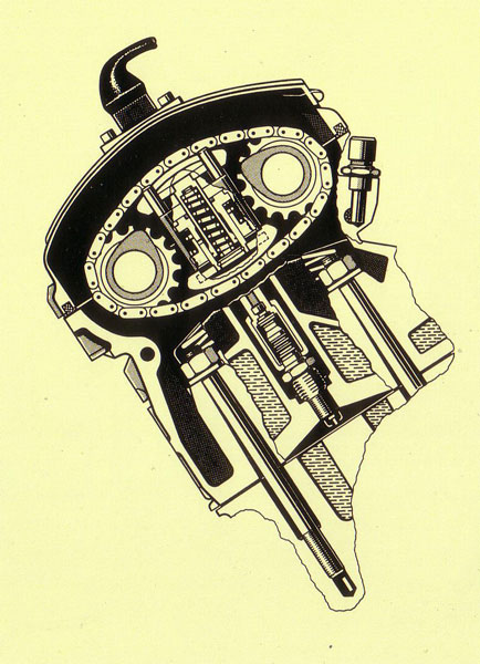 Dai commenti letti negli scorsi thread mi ero convinto che dietro a quell'auto ci fossero difetti di varia entità, magari pure gravi, ma una cosa del genere non la avrei mai immaginata... Tutto il mistero fino alla pubblicazione della foto del vano motore ha alimentato la curiosità rendendo la sorpresa ancora più amara. Complimenti al preparatore! P.S. per Nicola: il variatore della 968 agisce sulla catena che comanda i due alberi a camme, piazzata nella esatta metà della testata. Il punto che evidenzi con la freccia rossa è il paraolio cieco dell'albero di aspirazione. In quel punto solitamente si trova l'apparato del variatore di altri marchi, per esempio BMW. Nel disegno si vede la sezione trasversale della tesata/variatore della 968.