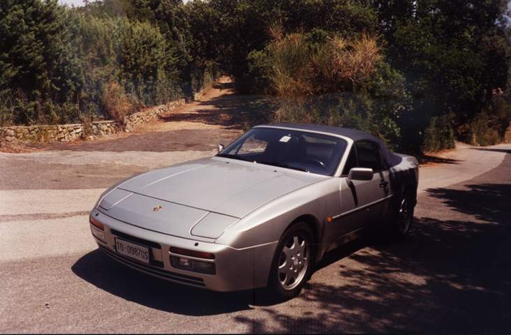 944 turbo cabrio, 1991, 70.000 km originali, esposta al Salone di Torino del 1991, una di 625 costruite, cappotte blu, sedili sportivi in pelle blu, radio Blaupunkt originale, SENZA cerchi cup ne' specchi a goccia, sempre tagliandata, targa originale, tutti i libretti, ruota di scorta mai usata, mi spiace NON vendo. Aggiunta di colore: sulla strada per il raduno del Sud ha bruciato la guarnizione della testata ed e' adesso in riparazione.