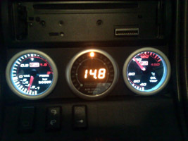 Oggi ho montato la sonda wideband per capire bene come "carbura" la mia piccola. Ho montato lo strumento sotto la radio, vicino a pressione turbo e temparatura olio: Vi piace?