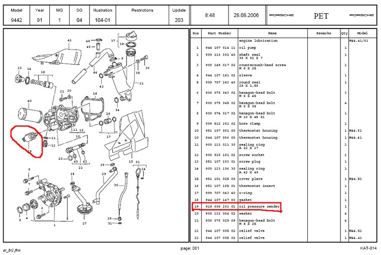 Ciao Arturo, credo ti riferisca al trasmettitore di pressione dell'olio, lo trovi di seguito: 92860620301 (circa 300€ in porsche) Saluti!