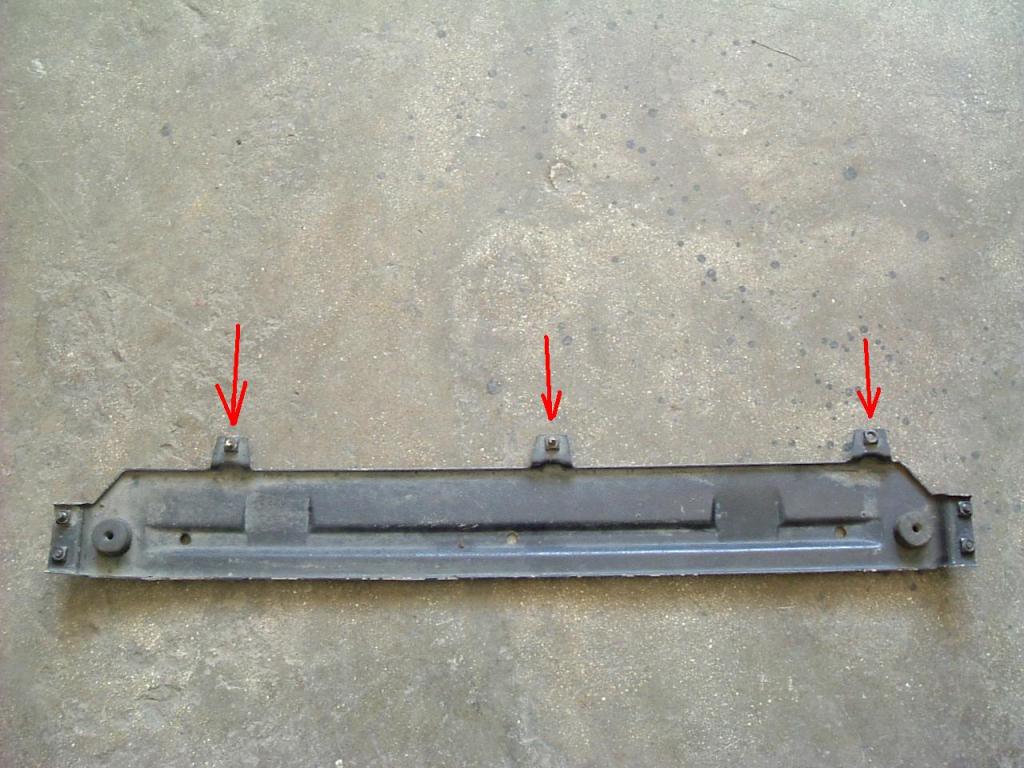 I 3 perni come li chiami tu sono fatti per montare la traversa allo spoiler inferiore. Il raditore si fissa lateralmente e va in appoggio sui due tamponi di gomma che vedi ai lati. |