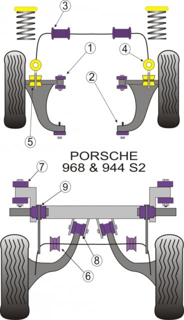 Patrizio, sulla mia ho cambiato tutti i silentbloks indicati sulla foto che pubblichi della sospensione anteriore: Quindi : 1,2,3,4,5. Mi pare di ricordare che il 3, va preso in base al diametro della barra antirollio che monti. Io ho fatto misurare con il calibro prima di ordinarlo. ( li vedi bene nella quarta foto che ho pubblicato ) Sulla 968 , poi , c'erano 2 versioni per il 2: con o senza pacchetto m030... io ho preso quelli senza, che tra l'altro vedi bene nella terza foto che ho pubblicato. Gli altri dovrebbero essere identici per tutti i modelli di 968 e 944 s2 e 944 turbo... |