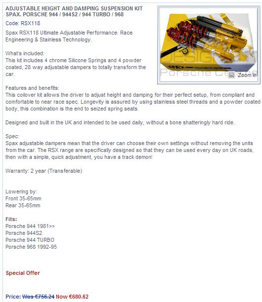 dcperformance e la stessa spax, invece confermano che questo assetto non è compatibile con le 944 prima serie. |