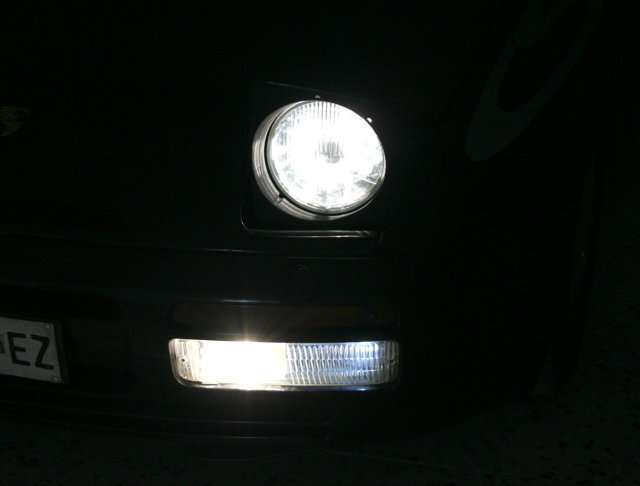 Il 944 ha il fendinebbia !! Quando aziono gli abbaglianti contemporaneamente si combinano anche i fari di profondità. I fendinebbia sono a lato nella zona dove vedi le luci di posizione che sono alloggiate sul fianco. |