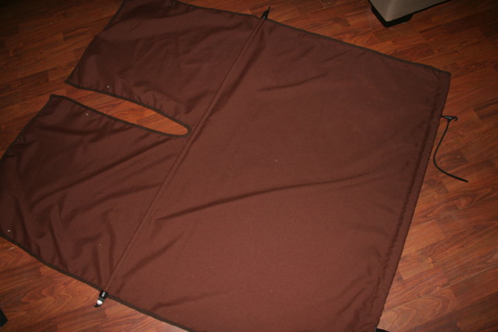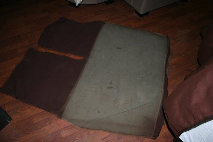 Ultimato dal tappezziere il telo copribaule. Questo era quello originale sbiadito dal sole: notate la forte differenza tra la parte esposta al portellone e le tasche
