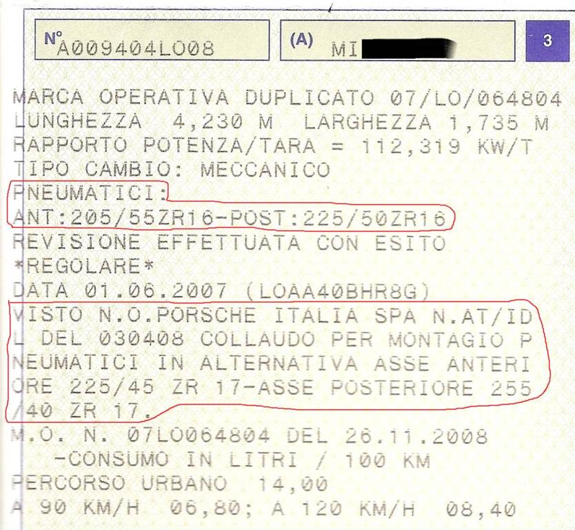 Ciao a tutti, una domandina a chi ha la Porsche 944 post '87 e che possono montare a libretto i cerchi da 17", mi sapete dire esattamente il codice delle gomme ? Sono 255/40 R17 ZY? 94 oppure 98 ? Mi dicono che sono molto importanti per un discorso di carico, è corretto ???? E per i codici delle 205/50 17 anteriori? Grazie Mille a chi mi risponderà ... Ciao Francesco Carpe diem