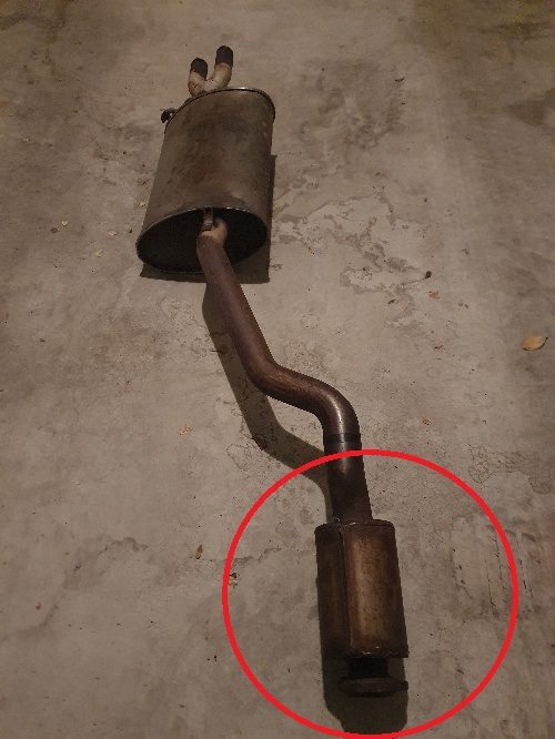 Per lo scarico ho lavorato sulla parte terminale (senza toccare il catalizzatore). Ho rimosso il risonatore di serie per le S2. Questo: