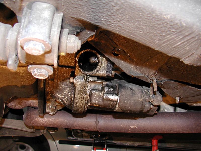 Controlla allora il cilindretto ricevitore; basta alzare con il cric il lato anteriore destro e dovresti avere una vista come quella della foto che ti ho messo sopra; togli il tappo circolare che chiude il foro di ispezione della frizione e controlla eventuali perdite in quella zona, come si vede nella foto sopra. Ti faccio vedere il tutto da altra angolazione, così è più chiara la posizione del cilindro.