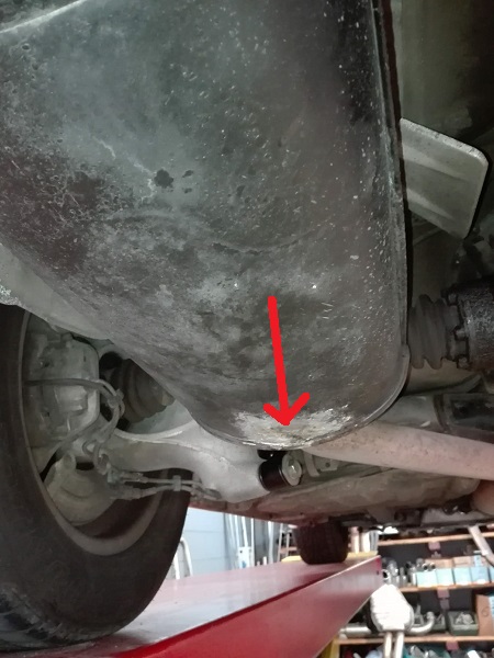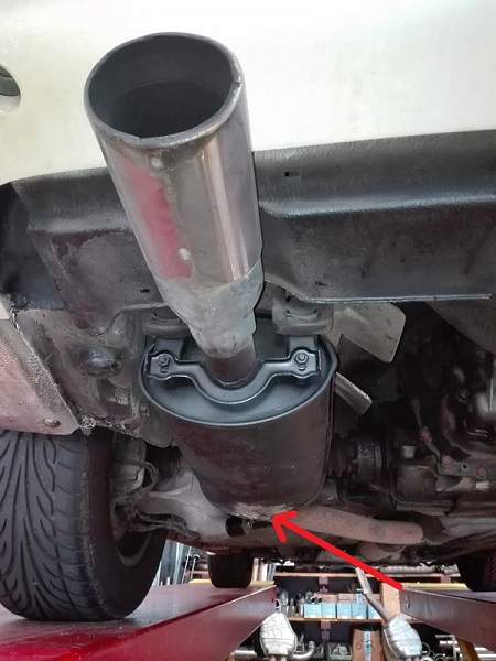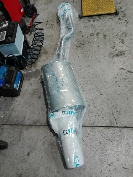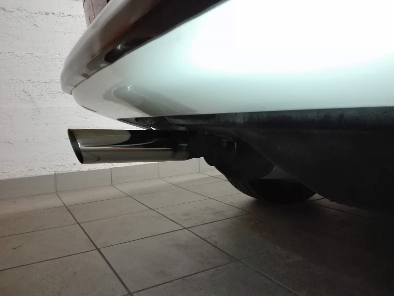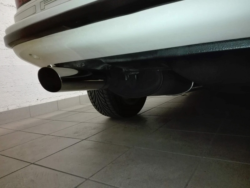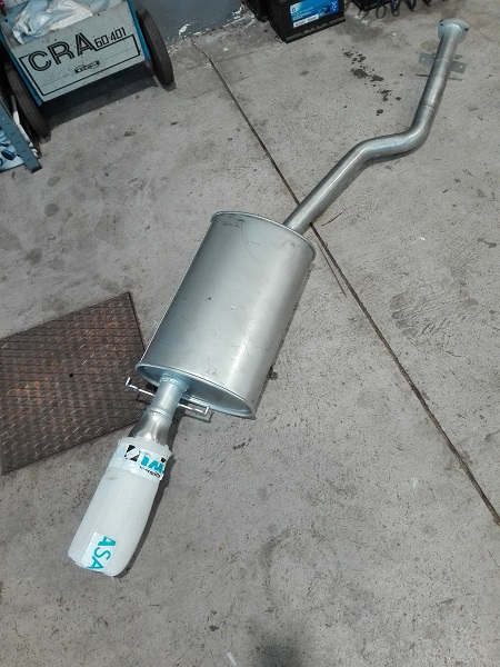 Riapro questo vecchissimo thread per documentare la sostituzione del terminale di scarico sulla Bianca. Dopo varie ricerche e valutazioni (Dansk, scarico su Rose Passion, possibile soluzione artigianale, uno scarico segnalatomi da Giovanni su Subito (era buono ma aveva il finale estetico piuttosto bozzato e ho lasciato stare)) ho optato per uno scarico IMASAF normalissimo con interno in alluminio (non ricordo il termine tecnico) per limitare la corrosione. Per l'ordine e l'installazione mi sono rivolto alla Top Car di Arese. Molto cortesi in fase di preventivo, il pezzo era disponibile e l'appuntamento è stato fissato subito. Veloci e professionali, in circa 40 minuti di lavoro il pezzo nuovo era montato. Ora qualche foto: vecchio terminale (la freccia indica dove c'era un buchino che avevo chiuso l'anno scorso con dello stucco per marmitte). Fosse stato solo per il buco, l'avrei fatto riparare e avrei lasciato le cose com'erano, ma l'anima interna era rotta e vibrava di brutto e, quindi, ho finalmente deciso di sostituirlo.