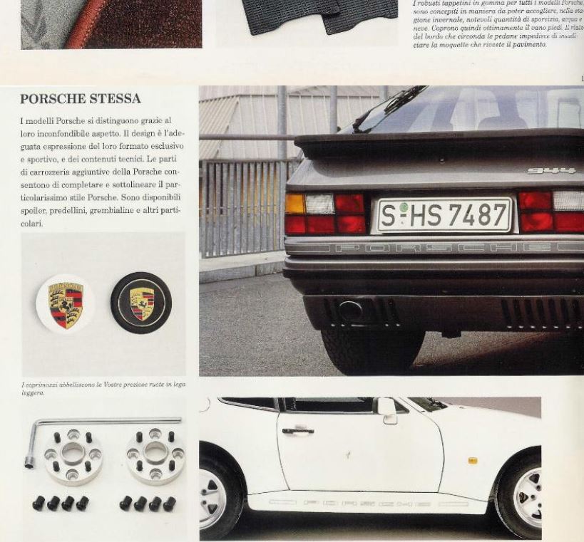 La mia le monta, anche queste presenti nel catalogo accessori Porsche 1988, sia pure con un vistoso adesivo Porsche.