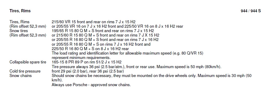 Ciao a tutti, io ho la porsche 944 ereditata da mio nonno, il quale ha smarrito il libretto di uso e manutenzione del veicolo. per tanto non so a che pressione vanno di preciso le gomme 215/60r15z anteriori e posteriori. Se qualcuno di voi sa dirmi la pressione esatta e se mi potete mandare per email il libretto di uso e manutenzione. grazie mille |