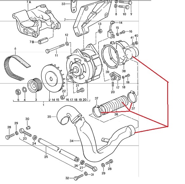 Ciao Giovanni il pezzo con codice 94457512102 e' il convogliatore aria montato dietro il paraurti anteriore . Gli altri pezzi com ti hanno gia detto sono per raffreddare l' alternatore. |