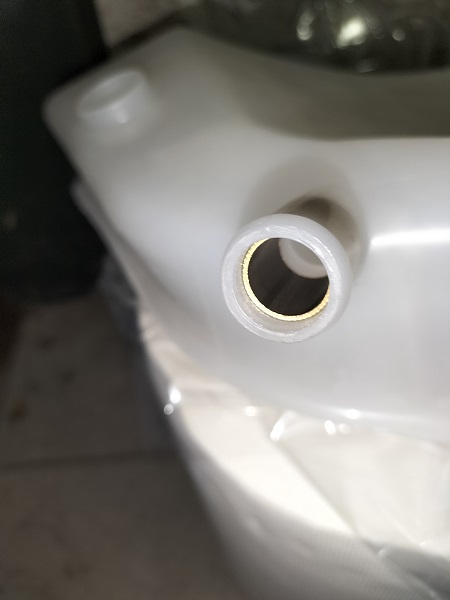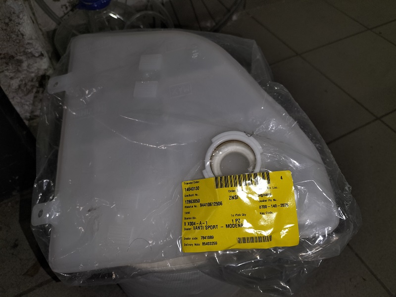 Nelle prossime foto vediamo la vaschetta nuova, con il codice e gli inserti in ottone nei vari imbocchi dei tubi