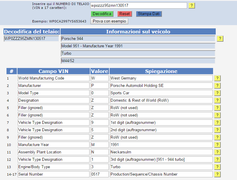 La foto è orrenda, lo so, ma per i professionisti di questo forum dovrebbe essere divertente e abbastanza facile dare un senso a tutti questi numeri. Vi aiuto, è una 944.