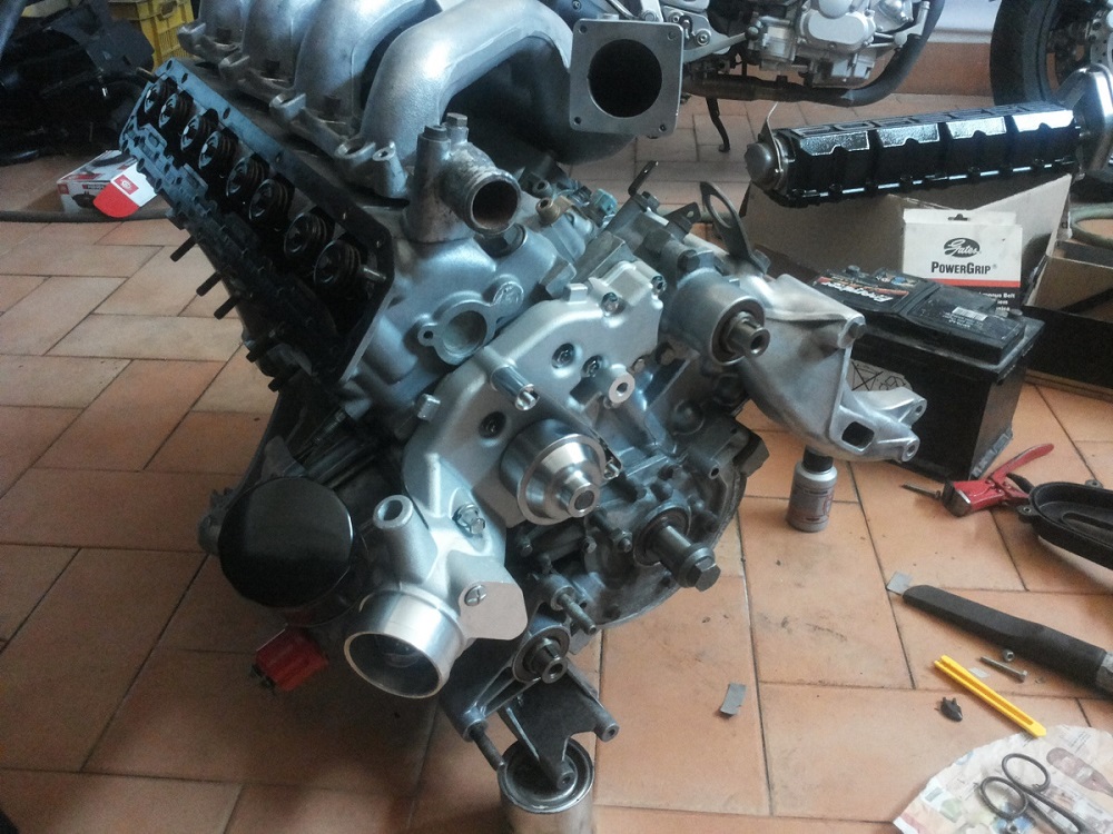 descrizioncina tecnica dell auto: -testata rinfrescata con pulizia condotti(aspirazioni sabbiate) -valvole lappate -guarnizioni tutte nuove -collettori di scarico rifiniti sui giunti di fusione -guarnizioni di scarico realizzate in rame cotto da 1mm(non per economia,nel kit testata ho ricevuto le originali in amiamto(?), ma quelle in rame sono eterne a8usate anche su altri mezzi che ho visto ben sollecitati) -frizione nuova con parastrappi a molla(avevo ancora una frizione buona con para in gomma, ma una volta che avevo il motore a terra non potevo rimontarla... volano rettificato(non ho voluto alleggerire, restiamo sicuri) e cuscinetti nuovi(reggispinta e albero) -tutti i paraoli nuovi corteco rossi(sostituendo i kaco originali, compresi gli o ring dei controalberi(è l'unico modo per RIFARE davvero la distribuzione -DISTRIBUZIONE COMPLETA CON POMPA E TUTTI I RULLINI(qui spese non indifferenti per uno studente) -terminale di scarico artigianale in acciaio inox(prima o poi realizzero' anche un centrale a camere) -radiatore nuovo NOS (fondo di magazzino LR) -cuscinetti ruote nuovi -ammortizzatori rifatti da un preparatore che me li ha irrigiditi un poco ricostruendo al tornio alcune parti che accennavano usura -barra duomi -tubi freni in treccia pastiglie tarox e dischi nuovi(originali) -per adesso basti questo. ci sono stati altri interventi che descriverò meglio poi...  |