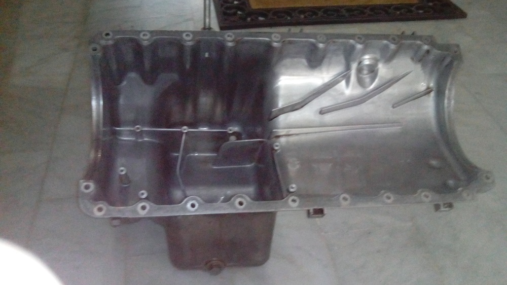 la mia coppa dell olio... non aveva chissa che sporcizia all interno, ma ho voluto rimuovere il paraschizzi in plastica(non so come meglio definirlo)che contiene lo sciabordio dell olio per rimuovere tutto. Se decidete di fare la stessa cosa, quando lo rimontate non dimenticate di fissare le viti con la loctite forte, non oso immaginare se si allentassero...