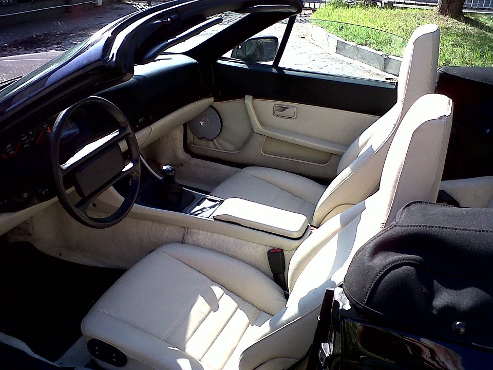 Gli interni non sono male ma necessitano di parecchia pulizia tappetini nuovi ecc . Ci sto ancora lavorando ! La verniciatura della carrozzeria andra’ rifatta ma non ho fretta soffro meno quando la lascio in parcheggio intanto ho restaurato i cerchi che avevano molti graffi Ed eccomi pronto per godermi la mia Cabrio