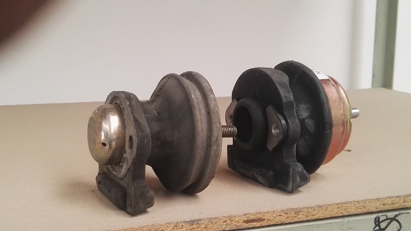 come potete vedere la necessita’ di cambiare i supporti e’ innegabile quello di destra maggiormente sollecitato dal calore nonostante la protezione termica e’ completamente aperto ed ha perso tutto il fluido idraulico ha un gioco tangibile di 8-10 mm .