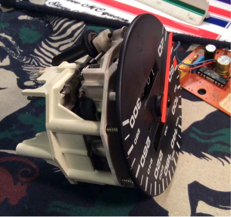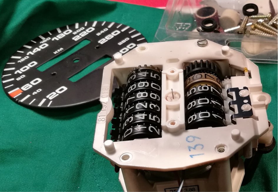 Per raggiungere il pezzo devi: 1) togliere il volante 2) smontare la cornice della plancia (7 viti) 3) a quel punto puoi togliere le 4 viti della strumentazione 4) sganci i connettori e hai in mano il gruppo strumenti 5) a quel punto puoi sistemare i prismi per l'illuminazione strumenti e smontare il contakm per arrivare alle rotelline