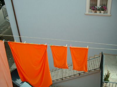 Ed allora mi chiedo se non sia un segnale !!!! Alla casa azzurino Gulf del mio vicino ormai avevo fatto l'abitudine.... Ma se la moglie mi stende dei lenzuoli arancioni mai visti prima, a creare quella associazione cromatica, allora vuol dire che è un segnale!!!!