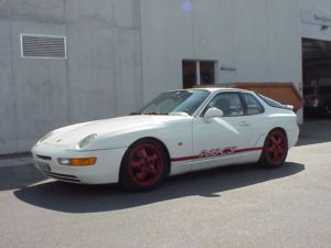 PORSCHE 968 CS Messa in circolazione 5 / 1993 Colore esterno bianco Chilometraggio 55,000 km Tipo di cambio Manuale Colore degli interni nero Cilindrata in cmc 2989 cm³ Cilindri 4 Potenza in CV 240 Peso a vuoto 1320 kg Ultima revisione 15.12.2003 Prezzo auto nuova CHF 77,000.- Prezzo CHF 26,500.- pari a € 17.200.-- Dotazione opzionale Differenziale bloccante, Telaio sportivo Dotazione di serie Cambio manuale a 6 marce, Sistema antibloccaggio delle ruote (ABS), Servosterzo, 4 cerchioni fusi in lega leggera 17J, Vetri atermici, Spoiler posteriore, Fari antinebbia, Fari supplementari, Regolazione della portata dell'illumina- zione dal interno, Sedili avvolgenti, Volante e leva del cambio rivestiti in cuoio, Contagiri