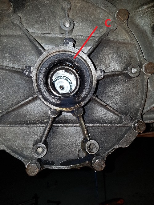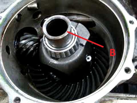 Mi sembra che la "coppetta" scanalata (giunto) vada a battuta sul fondo del differenziale, dove è presente il foro filettato di M10, o anche sul piano B se questo è solidale con il differenziale, ma non certo sul paraolio. Attenti! |