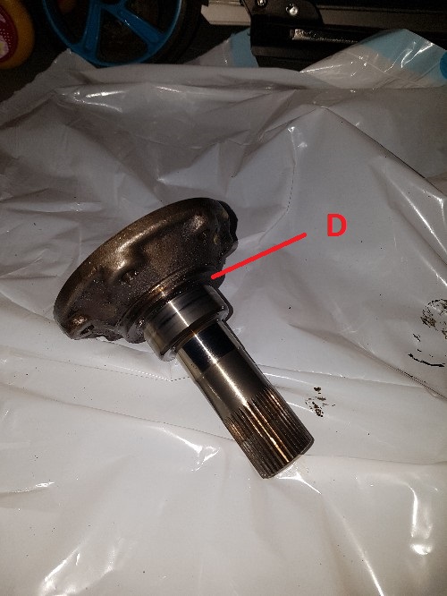 In pratica il mozzo si muove avanti e indietro. Cosa che non fa sull'altro semiasse. Smontato: