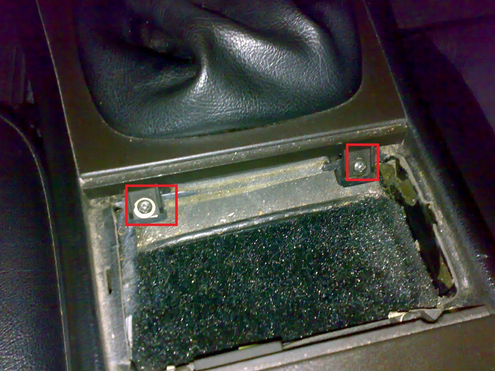4) togliere le viti che tengono la console centrale al suo posto (una a dx e una a sx)
