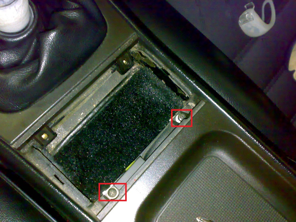 3) rimuovere il bracciolo o il portaoggetti togliendo le 4 viti (le seconde sono sotto al tappetino antiscivolo)