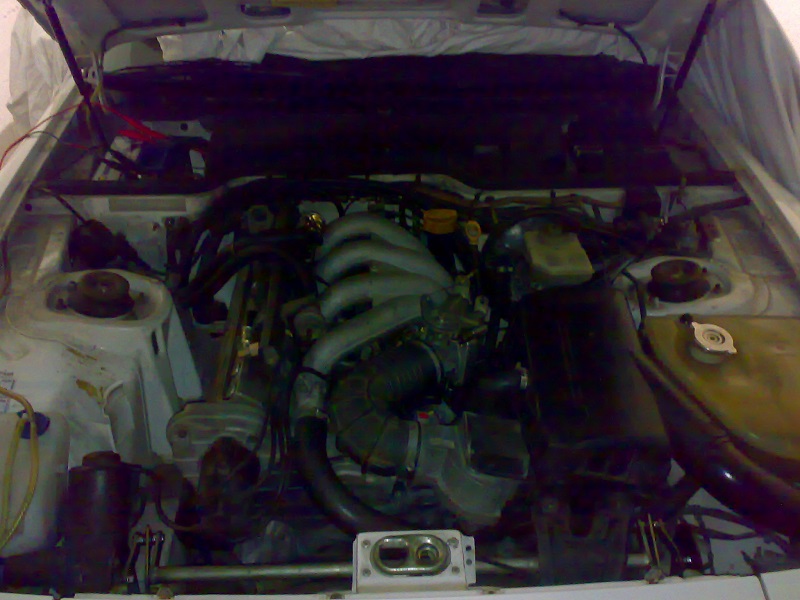 il compressore è persumibilmente un Sanden da post montaggio(si vedono i fissaggi universali)...la tubazione è in gomma invece che rigida(nell'originale passa proprio sopra il duomo sinistro)..il filtro è un universale con pressostato(l'originale è in alluminio)...la tubazione qua è praticamente e completamente in gomma ed esce tramite due passatubi(che in foto sembrano sporchi di vernice) nel posto giusto al momento giusto