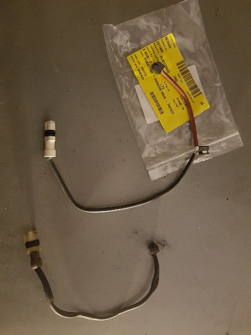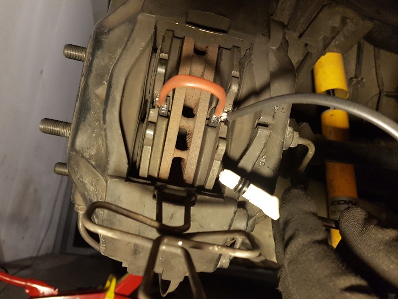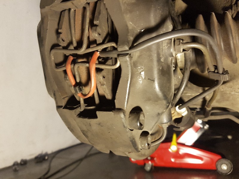 A questo punto credo che i cavetti siano intercambiabili. Tutte le pastiglie delle 944 hanno l'alloggiamento per il sensore. Quindi nulla vieta di utilizzare il cavetto doppio (20 Euro in Porsche, meno on-line) su tutte le 944. Sarebbe da provare e se ho interpretato male mi scuso. Nel caso un upgrade semplice da fare. Ecco il cavetto nuovo in posizione.