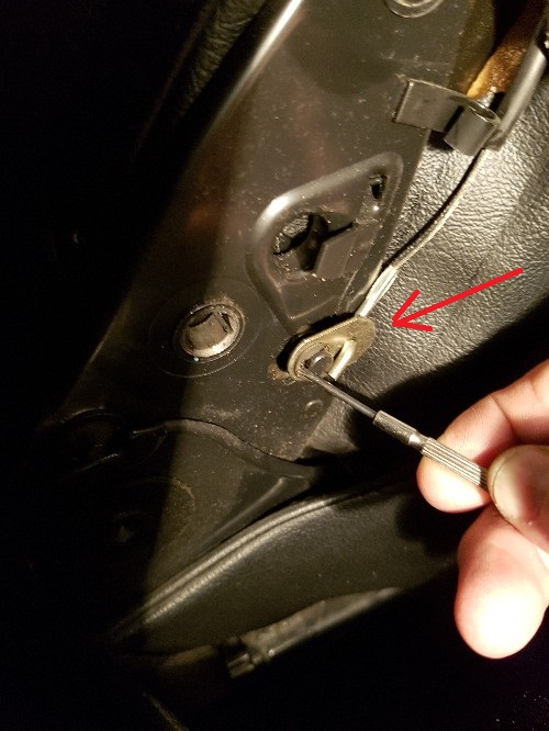 - con un piccolo cacciavite si toglie la rondella che fissa il meccanismo di sgancio per i ribaltamento sedili