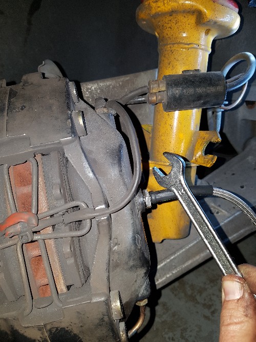 Quasi commovente notare la coerenza del Gruppo! Ho fatto analogo intervento sul mio Maggiolino del 1963 e le chiavi da usare sono esattamente le stesse! Ossia: 11mm per i dadi sui tubi metallici, 17mm per l'esagono dei flessibili e 14mm per l'esagono sul cilindretto. Anche la piastrina di fissaggio è uguale. Una buona progettazione secondo me include anche il non costringere chi fa assistenza a dotarsi di mille chiavi diverse per assecondare la mancanza di organizzazione e coerenza del progettista. Invece del siringone però ho spurgato con la pompa a vuoto. E una chiave da 11 (non del tipo corretto per i freni) mi si è spezzata, segno che quella giusta per i freni è utile. Ho anche dovuto mettere un po' di teflon sulle vitine di spurgo altrimenti allentandole anche poco per spurgare entrava aria dalla filettatura.