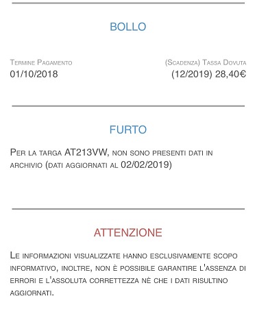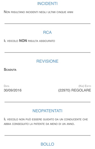 Secondo me, l'unica maniera per sapere quanti km ha l'auto è, attraverso il numero di telaio, vedere se nei sistemi informativi di Porsche risultano tagliandi e manutenzioni. Se già ne trovassi uno registrato a, ad esempio, 37.546 km, sapresti che i km veri sono almeno 123.000. I km riportati dalla app sono quelli letti dal contakm dal tizio che ha fatto l'ultima revisione per cui confermano che negli ultimi 2 anni e mezzo sono meno di mille. Comunque, senti cosa ti dice l'esperto del CP e riporta qui il resoconto, così ci facciamo un'idea... adesso sono curioso :D Spero per te che tu riesca a tenerla in famiglia per questi 4 anni che ti mancano per potertela godere. Ale C'è chi ha cervello e chi ha la testa disabilitata.