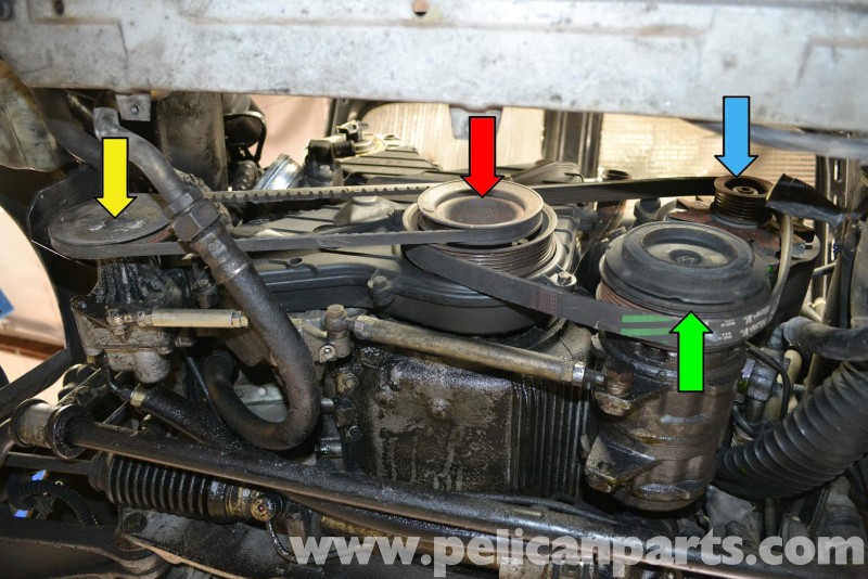 la pompa dell'acqua è trascinata dalla cinghia della distribuzione ma io eviterei di usarla con l'alternatore che non carica,non si fa molta strada nel posto giusto al momento giusto